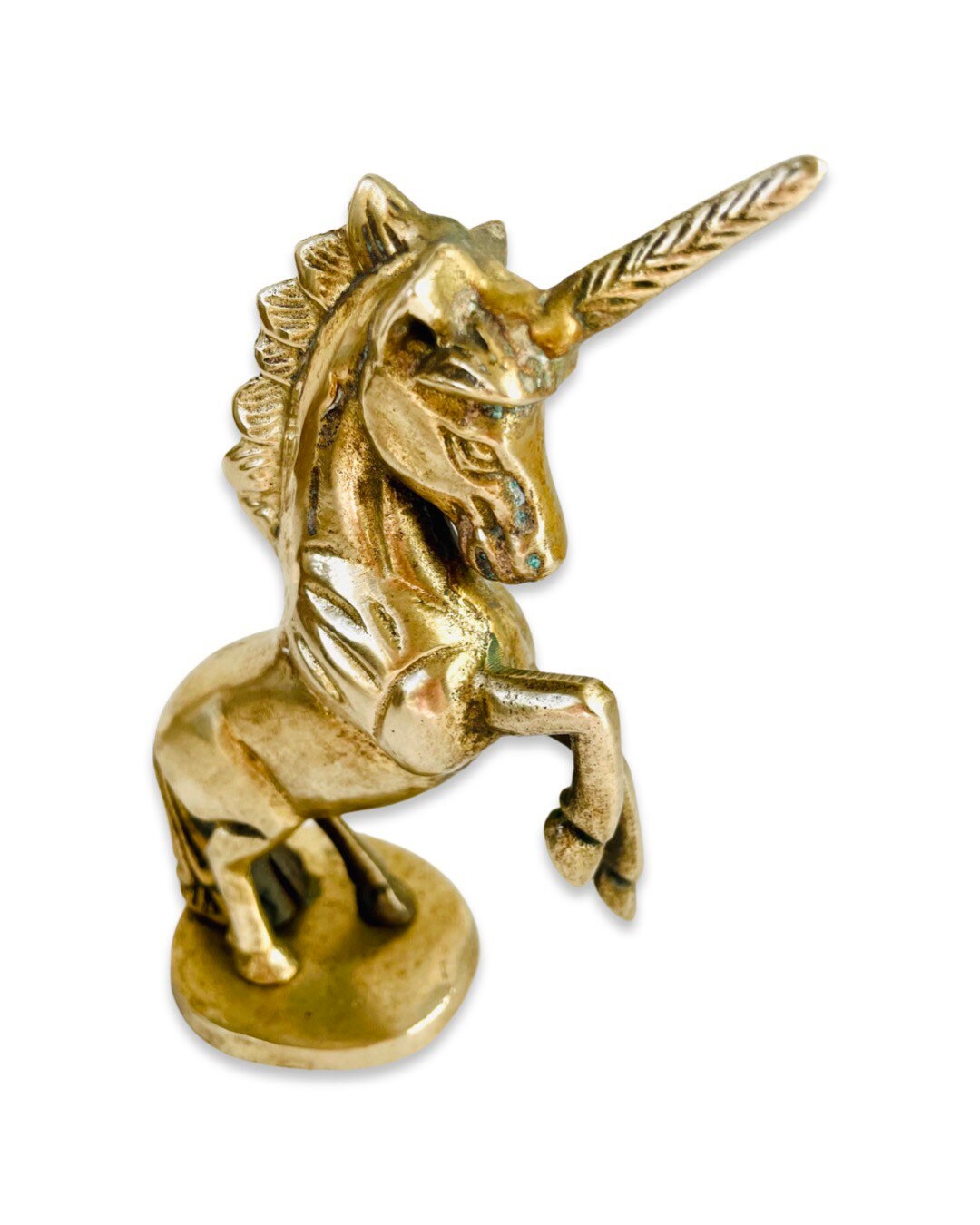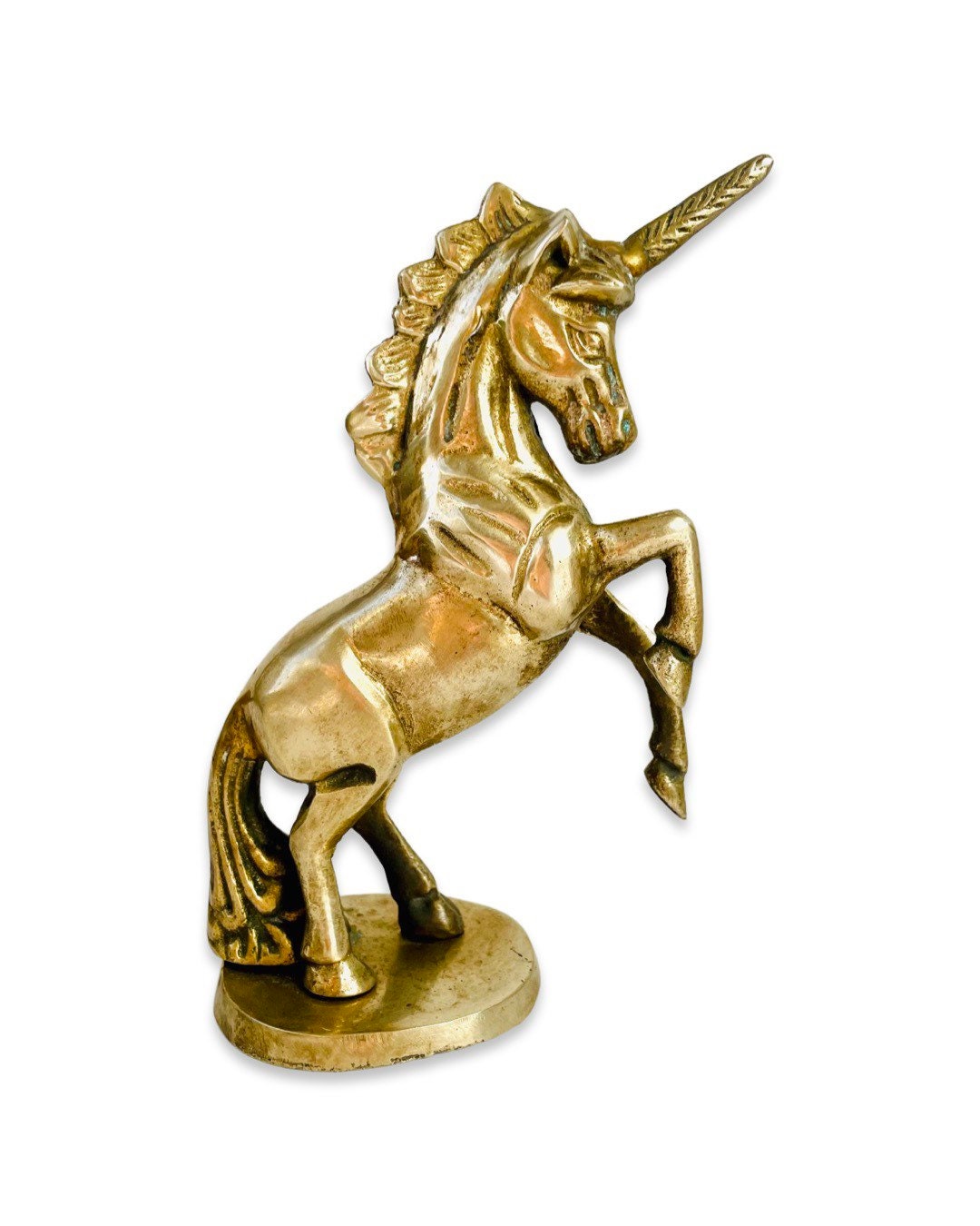A truly fantastic beast! Add some vintage brass flair to your bookshelf or tabletop with this majestic beauty. This sweet unicorn would be a gorgeous addition to your home.