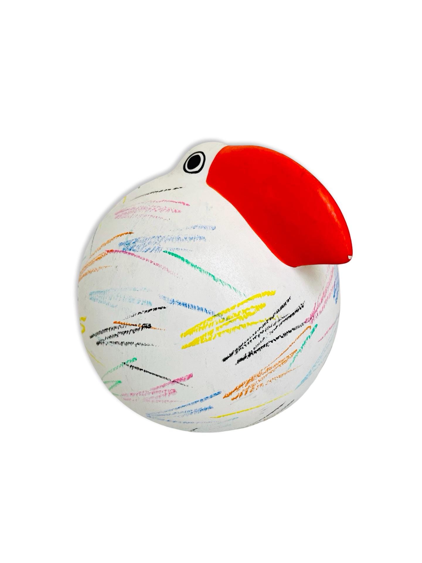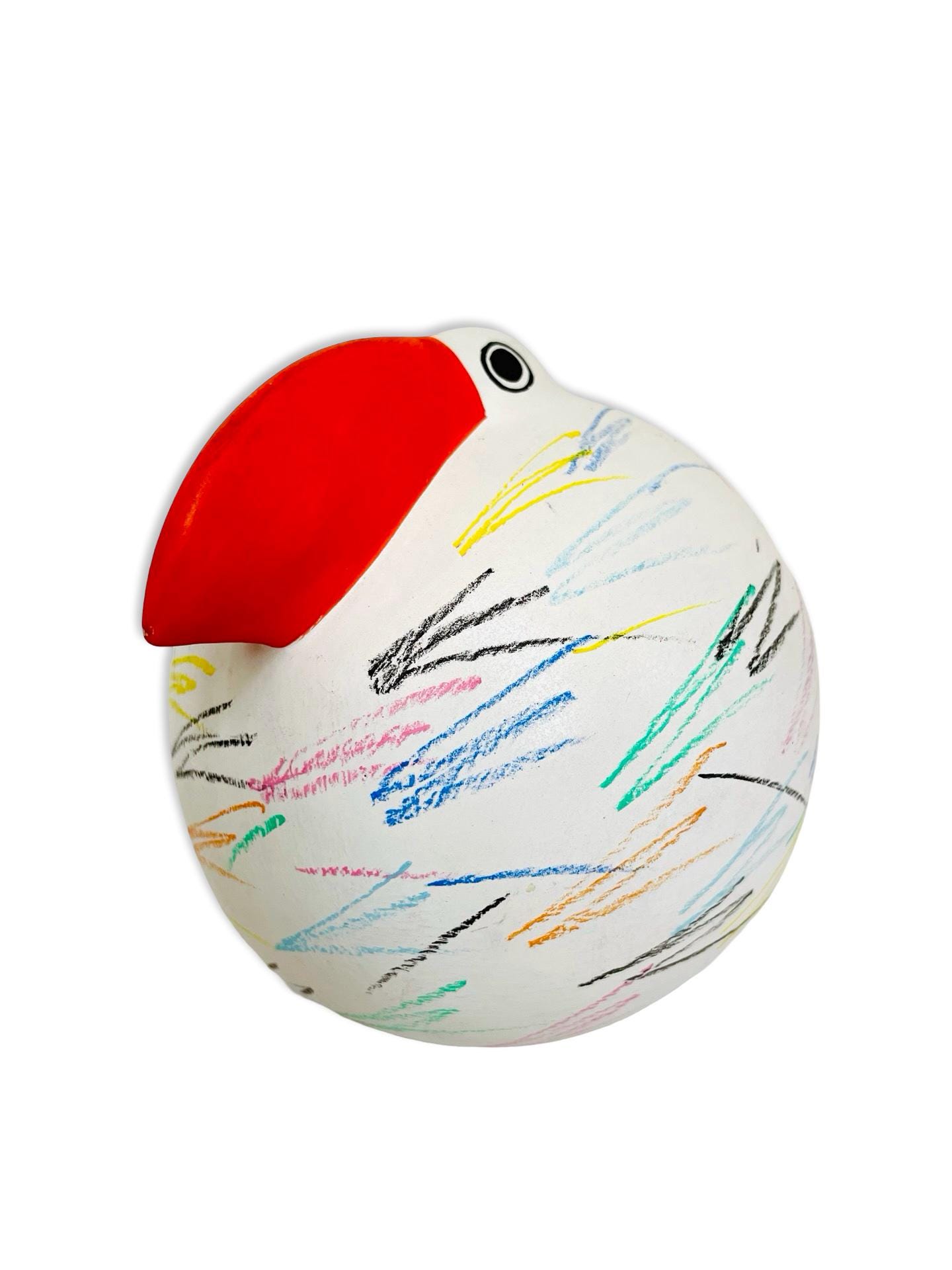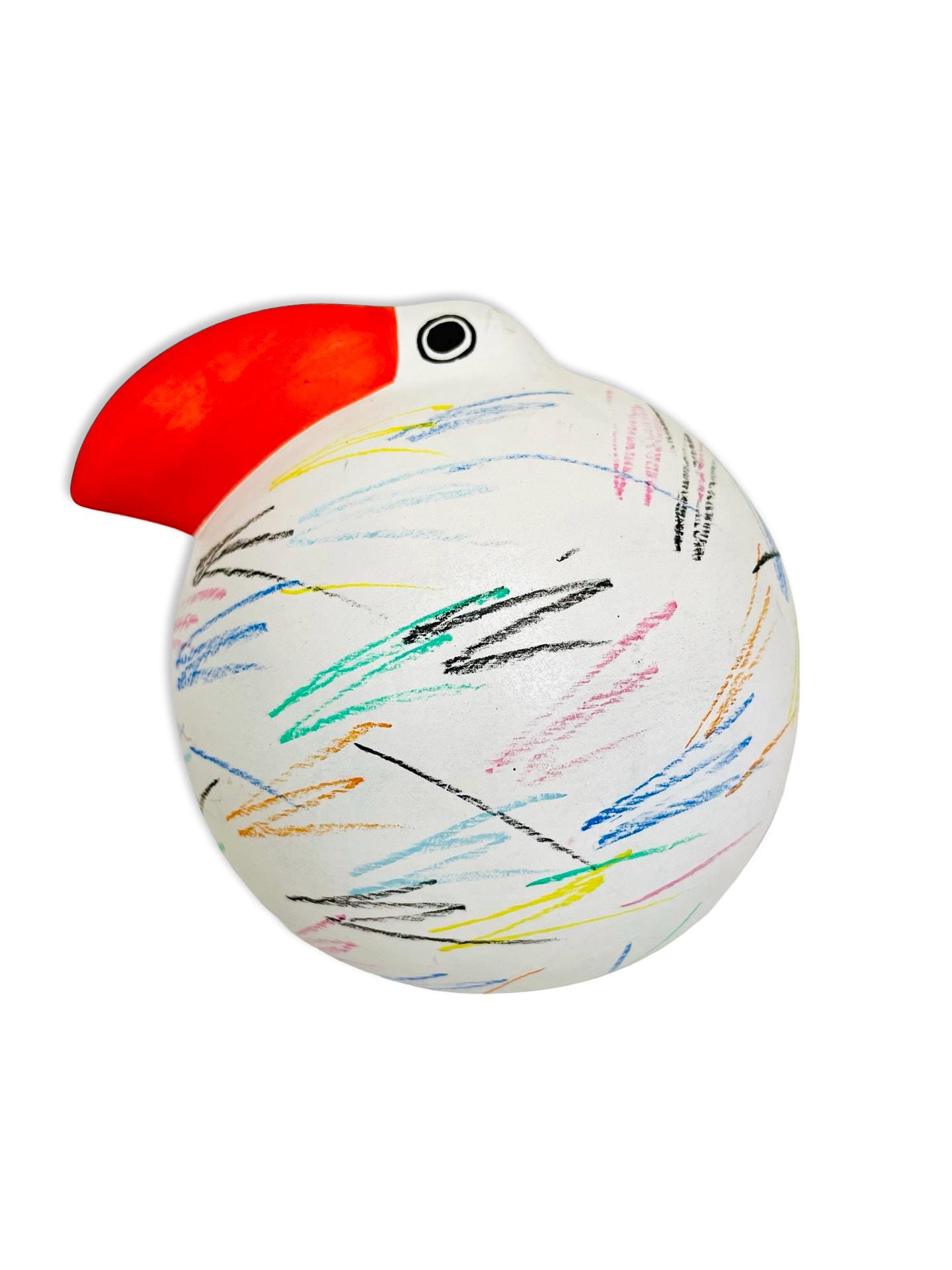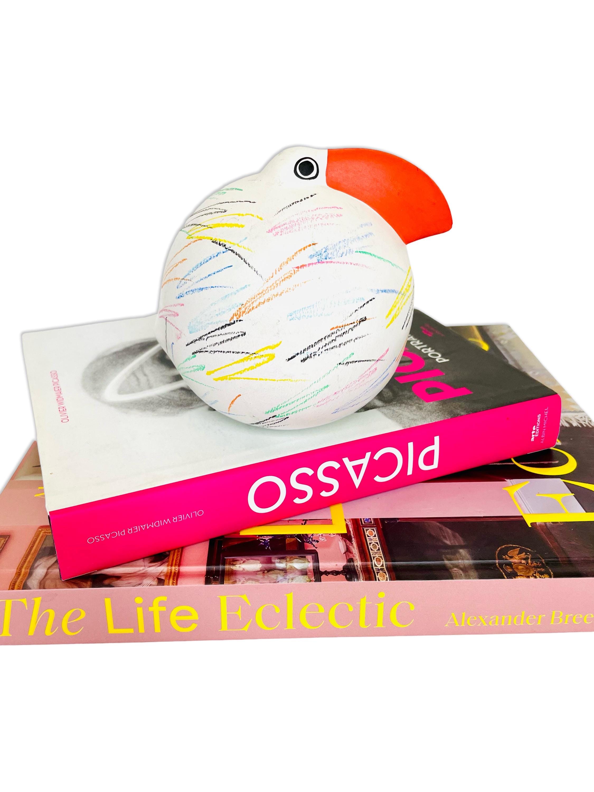 Full of charm and personality, this Italian Babbosole bird was made exclusively for Neiman Marcus and is ready to brighten up any space. With its bold red beak, round, whimsical shape, and colorful hand-painted scribble-like strokes, it has a joyful, almost storybook quality. Both quirky and stylish, it makes a cheerful accent for a bookshelf, coffee table, or entryway — the kind of piece that always sparks a smile.
