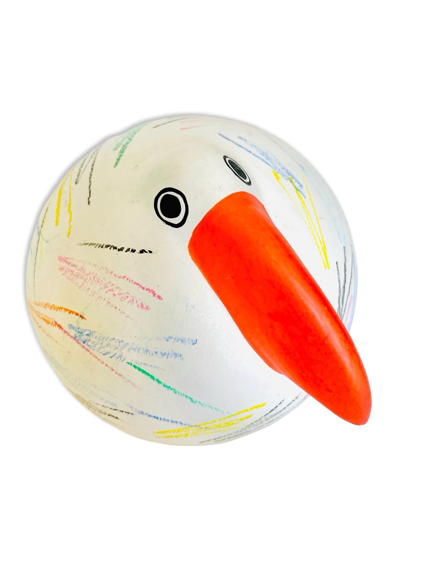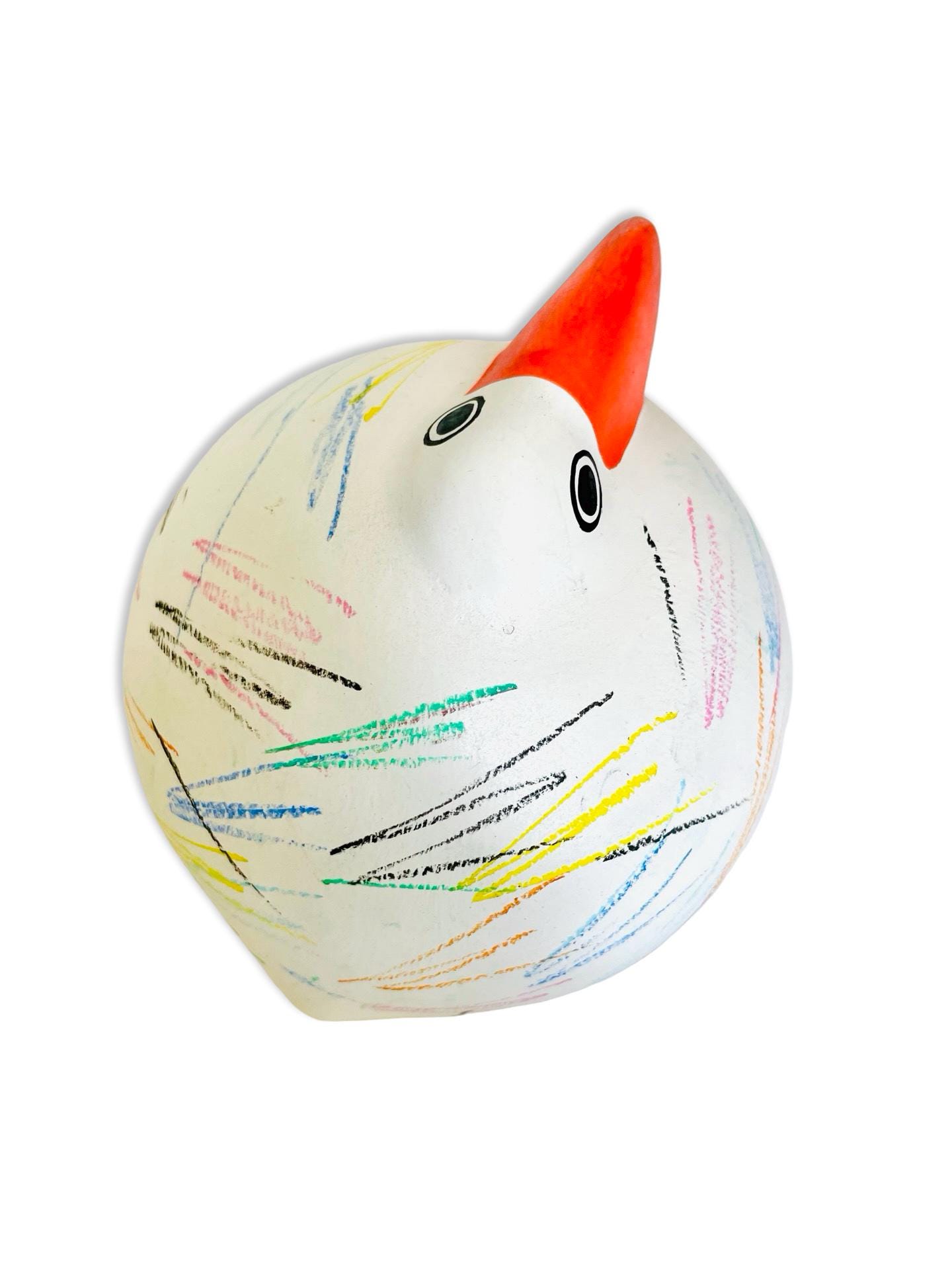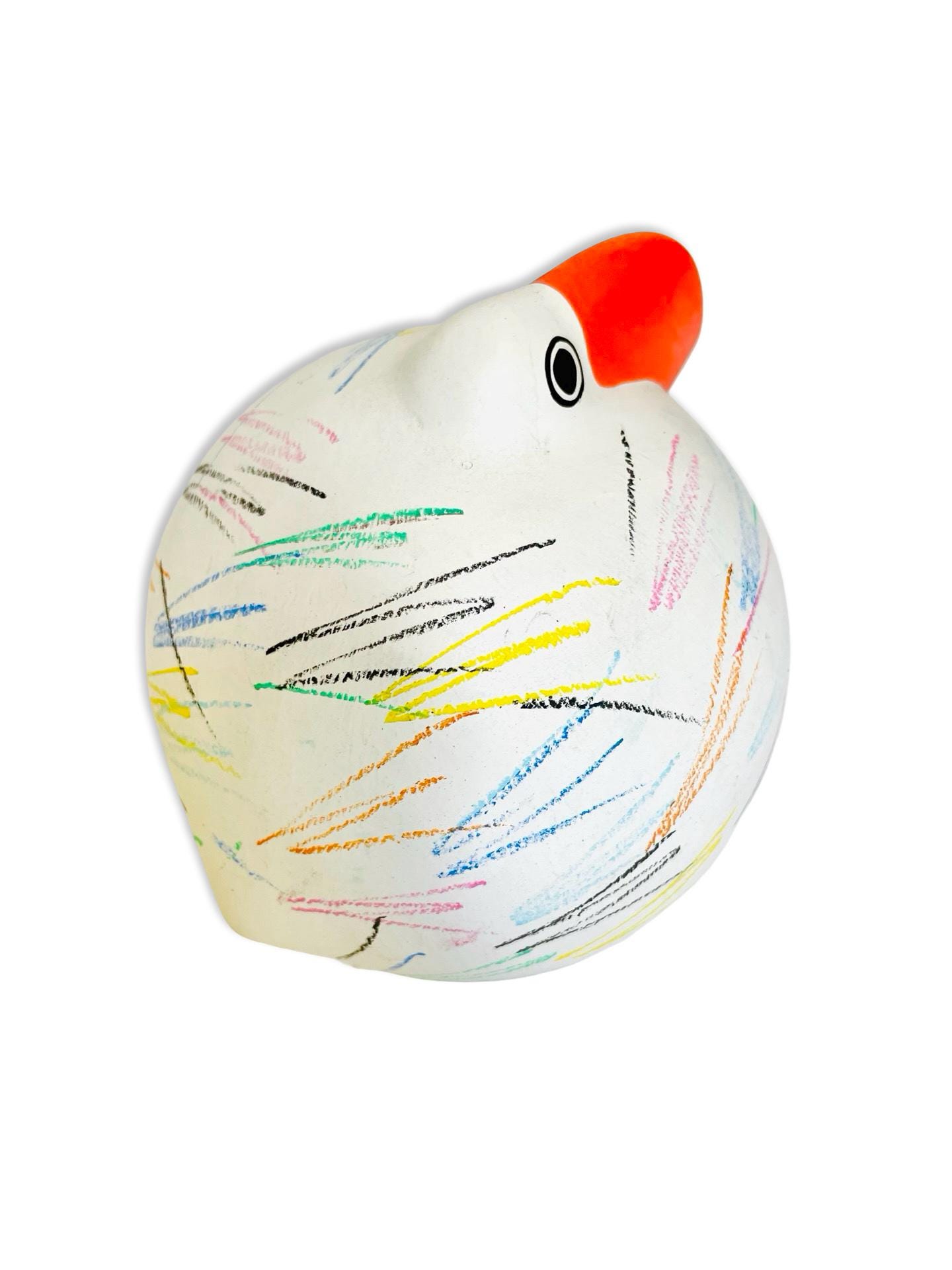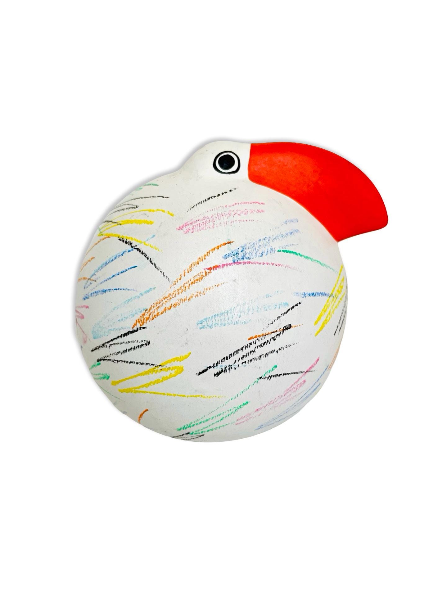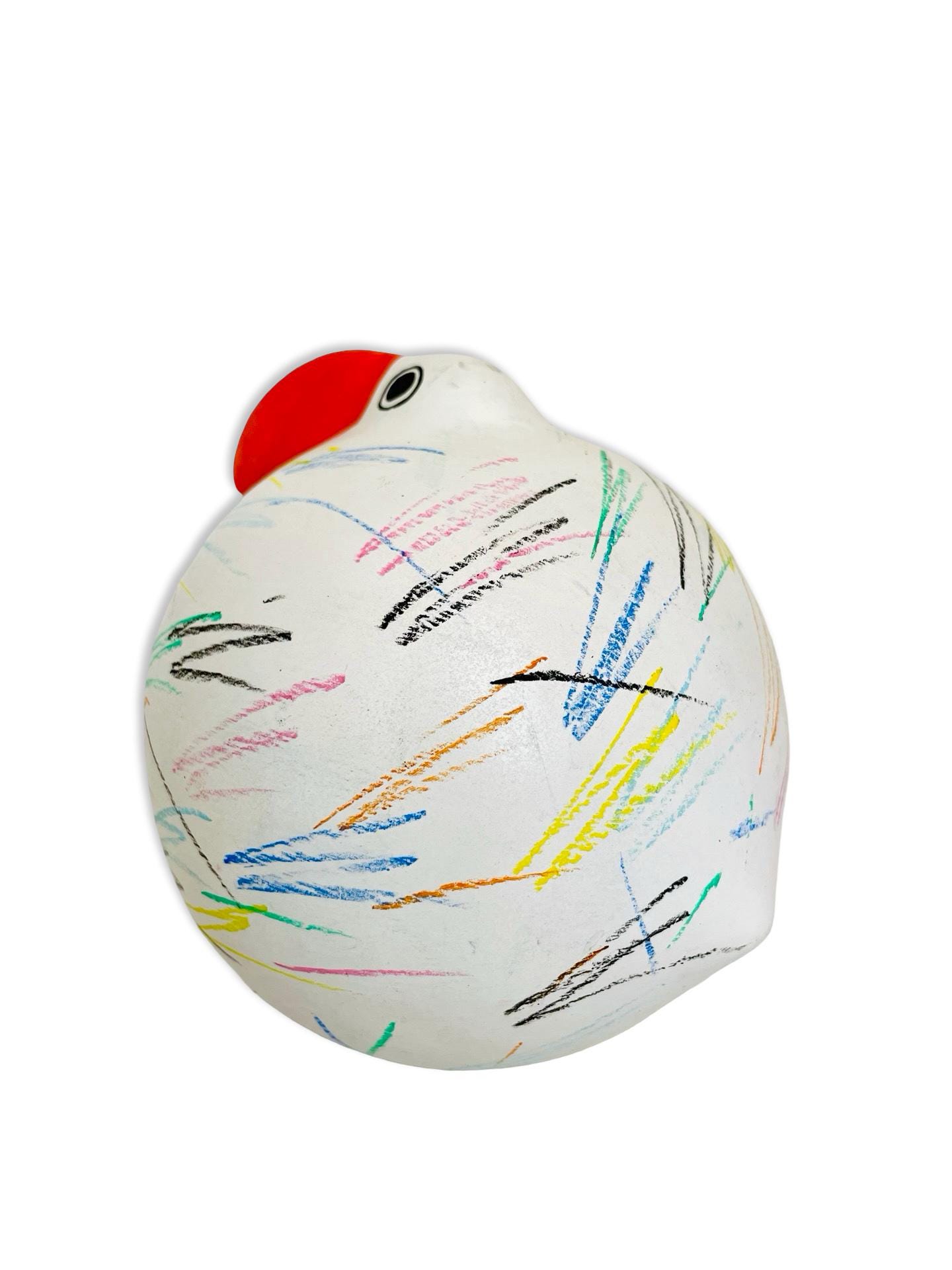 Full of charm and personality, this Italian Babbosole bird was made exclusively for Neiman Marcus and is ready to brighten up any space. With its bold red beak, round, whimsical shape, and colorful hand-painted scribble-like strokes, it has a joyful, almost storybook quality. Both quirky and stylish, it makes a cheerful accent for a bookshelf, coffee table, or entryway — the kind of piece that always sparks a smile.