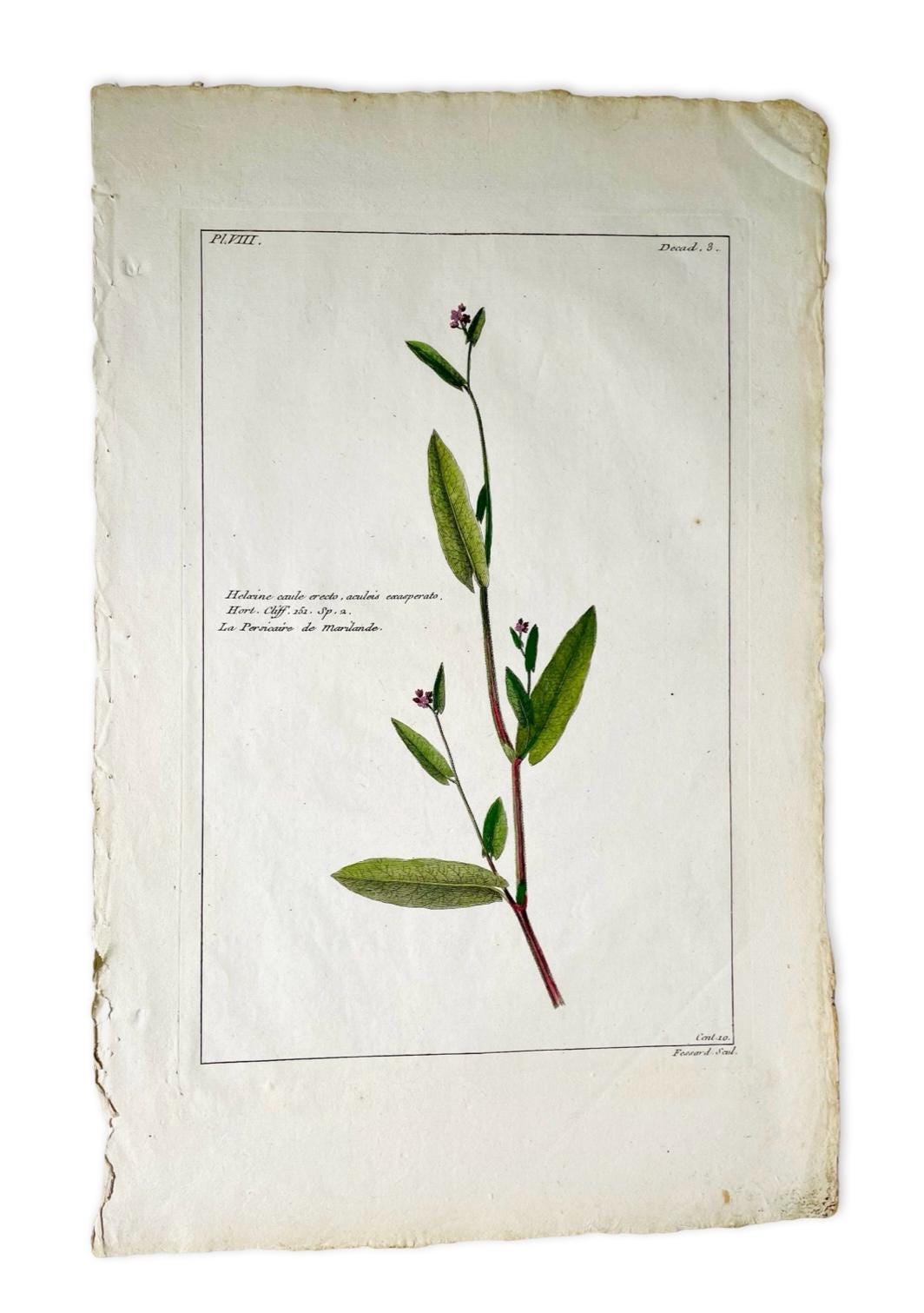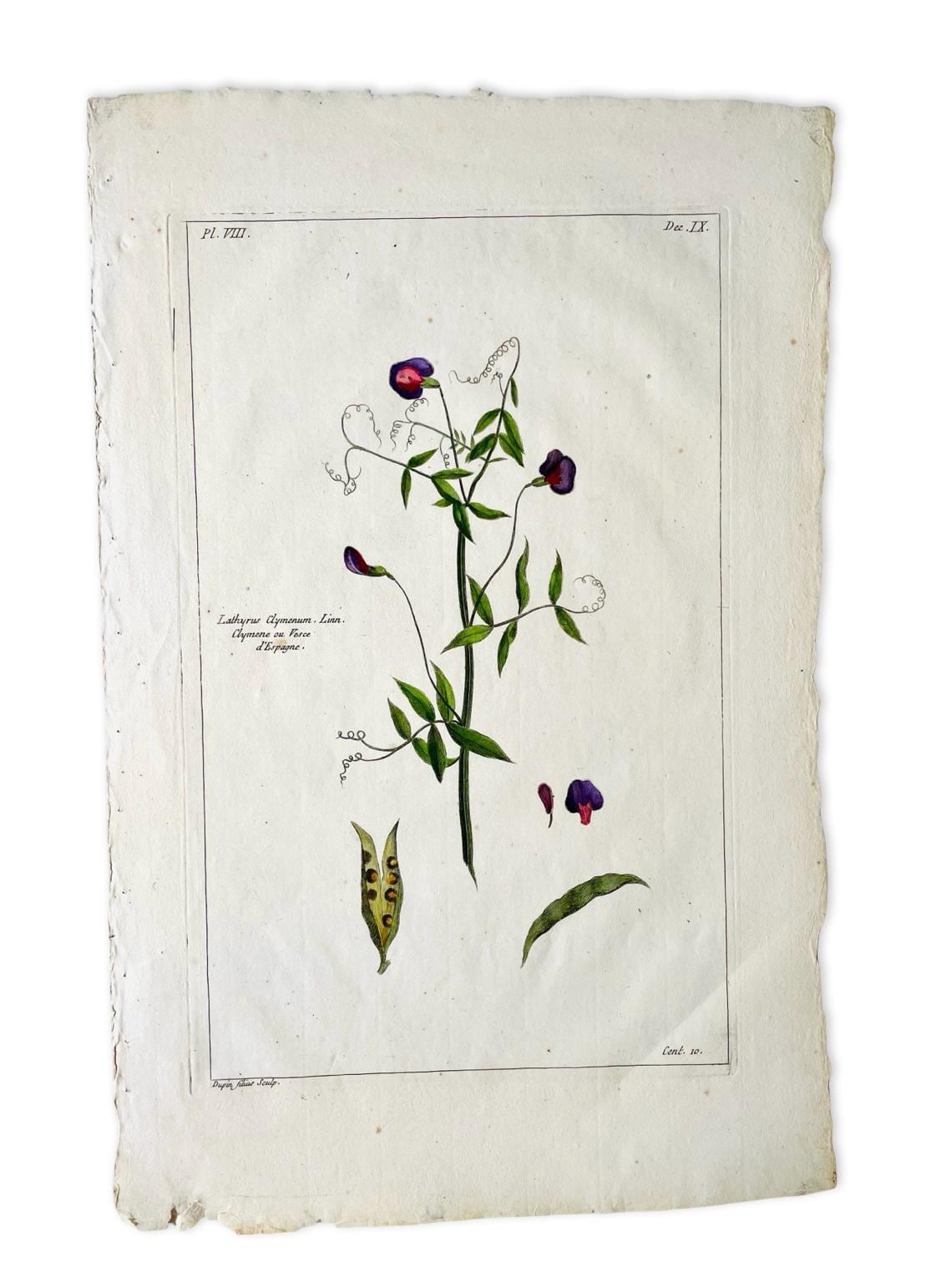 A stunning 18th-century botanical engraving from the celebrated French naturalist and physician Pierre-Joseph Buchoz (1731–1807). This original hand-colored print, published around 1774, beautifully illustrates the artistry and scientific precision of early botanical studies.