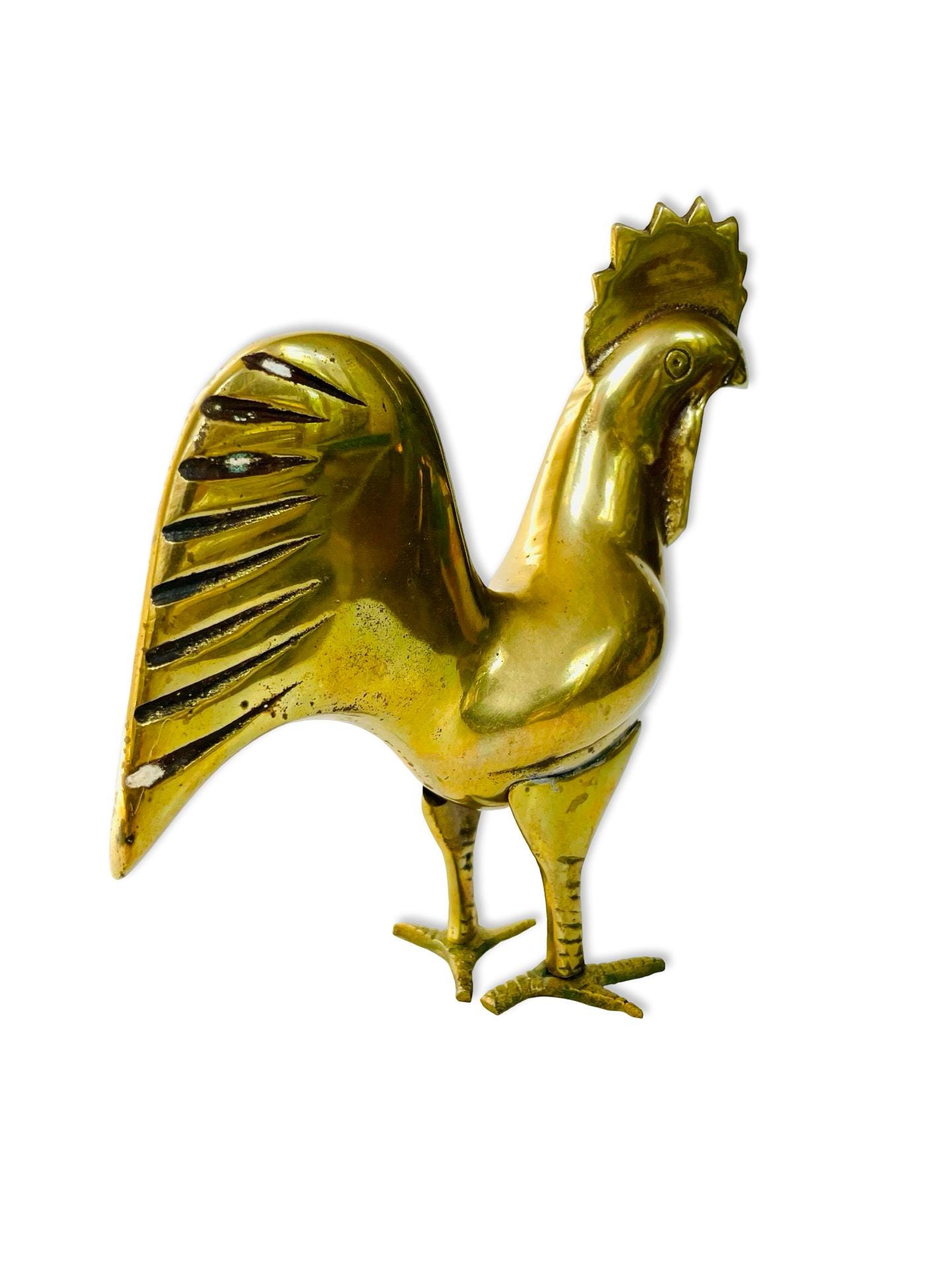 Finished in warm brass with beautiful age and patina, this piece makes an instant statement on a shelf, mantel, kitchen counter, or entry table. Whether you love rooster decor or simply appreciate strong sculptural forms, this one brings character wherever it lands.