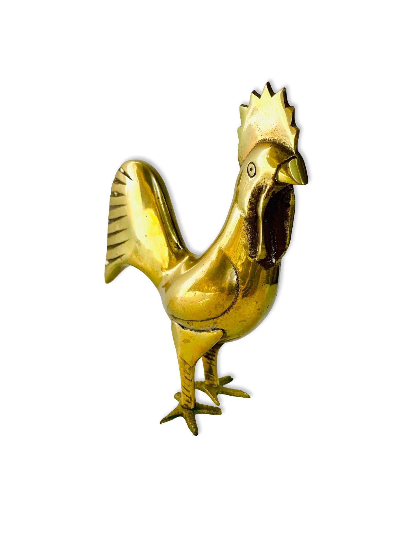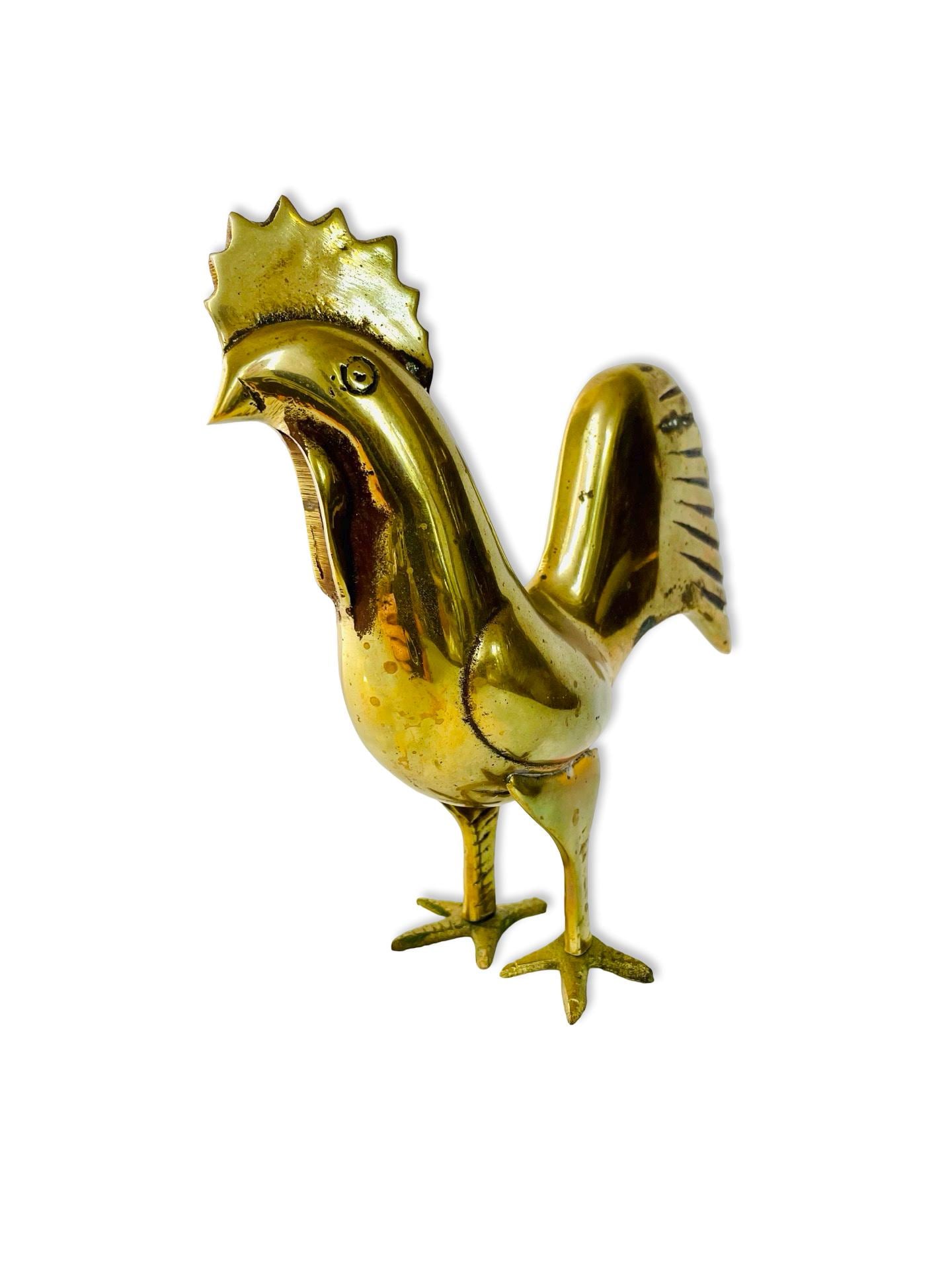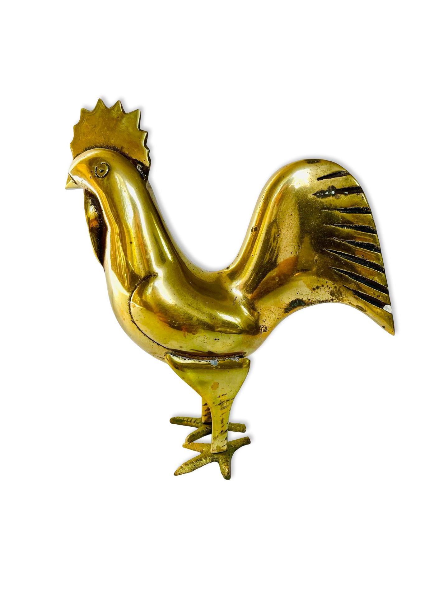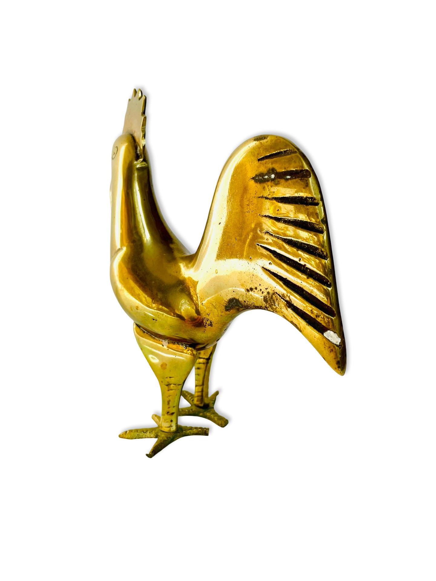 A classic symbol of confidence and good fortune, this vintage brass rooster figurine is full of personality. Sculpted with a bold silhouette, arched tail, and detailed comb, it has that perfect mix of folk art charm and mid-century flair.