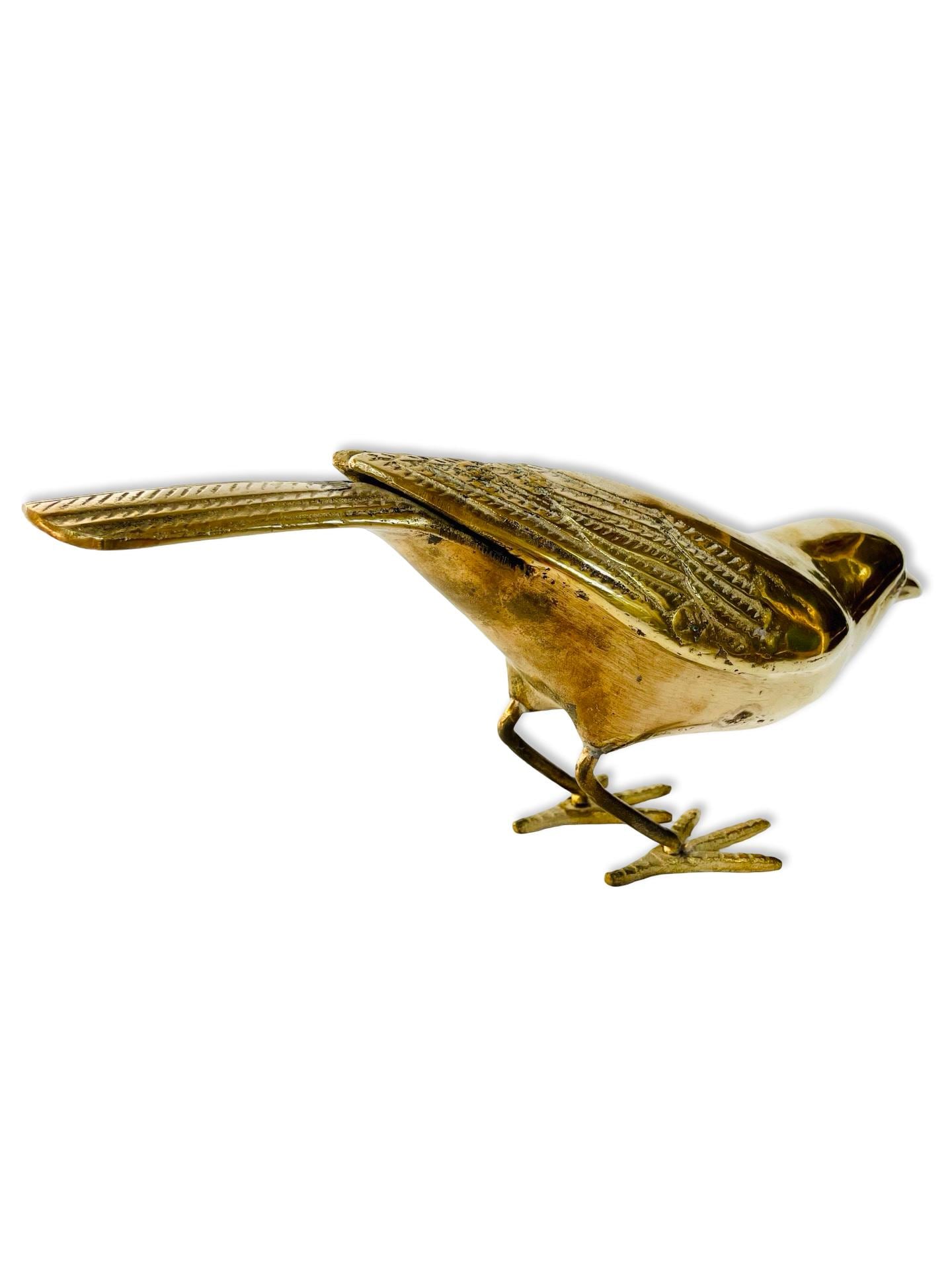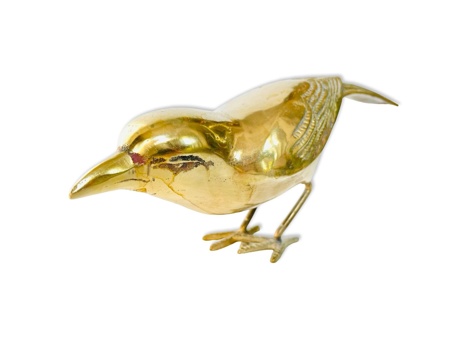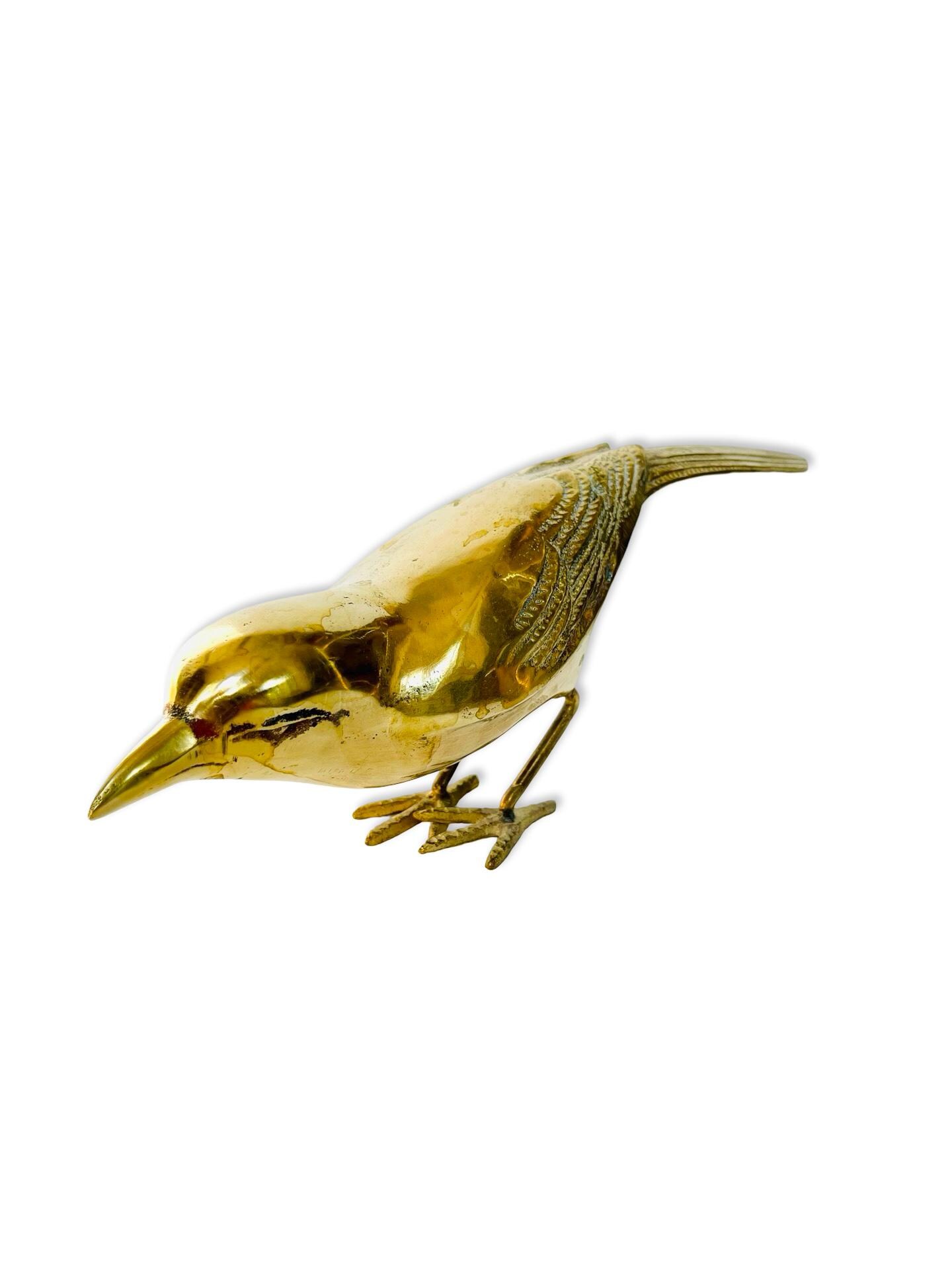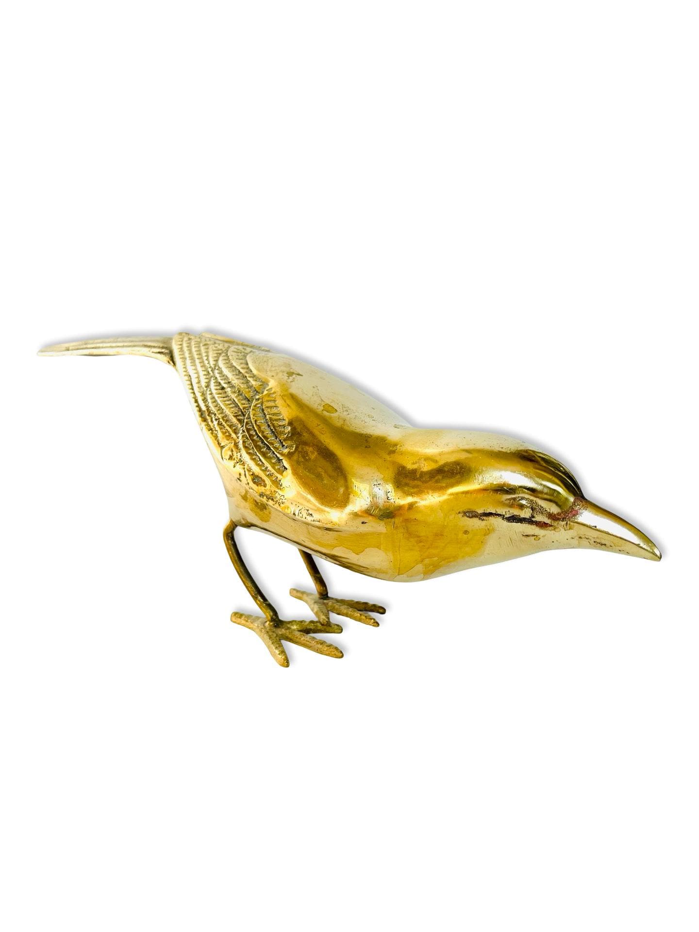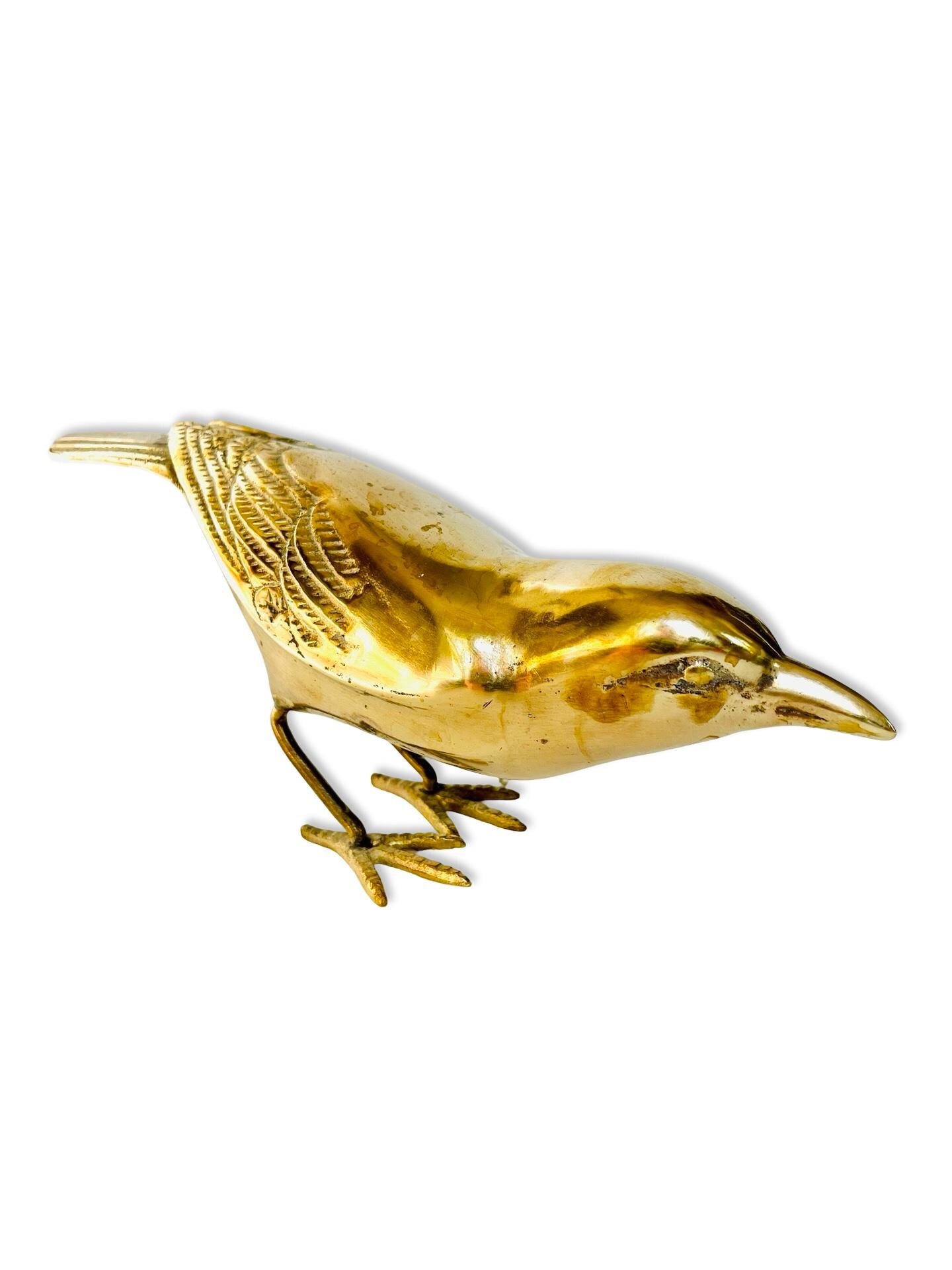 A beautifully sculptural pair of vintage brass birds, each with a sleek silhouette and finely detailed wings. Their elongated forms and warm, aged patina give them an understated elegance—perfect for styling on a bookshelf, coffee table, or layered atop a stack of books.