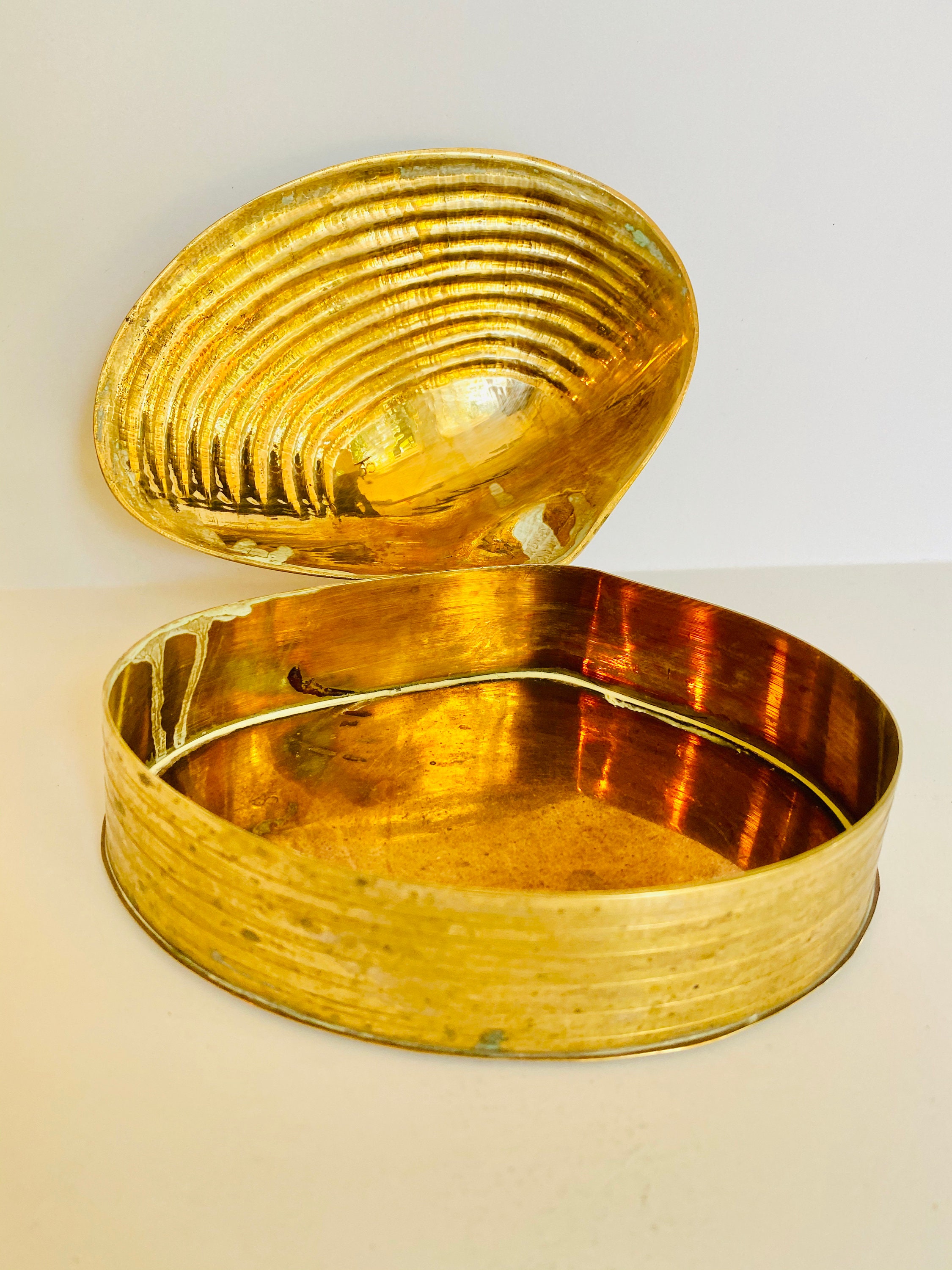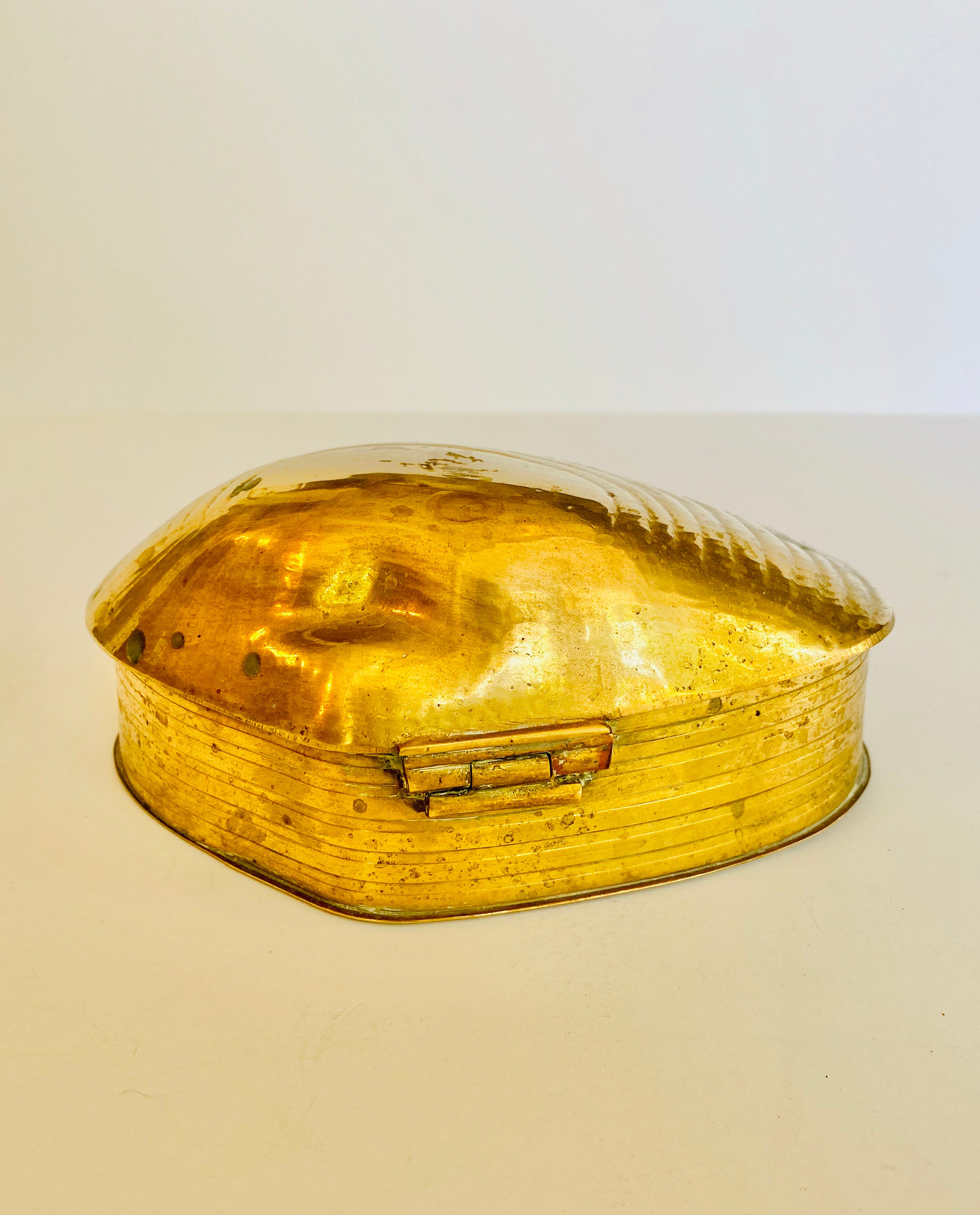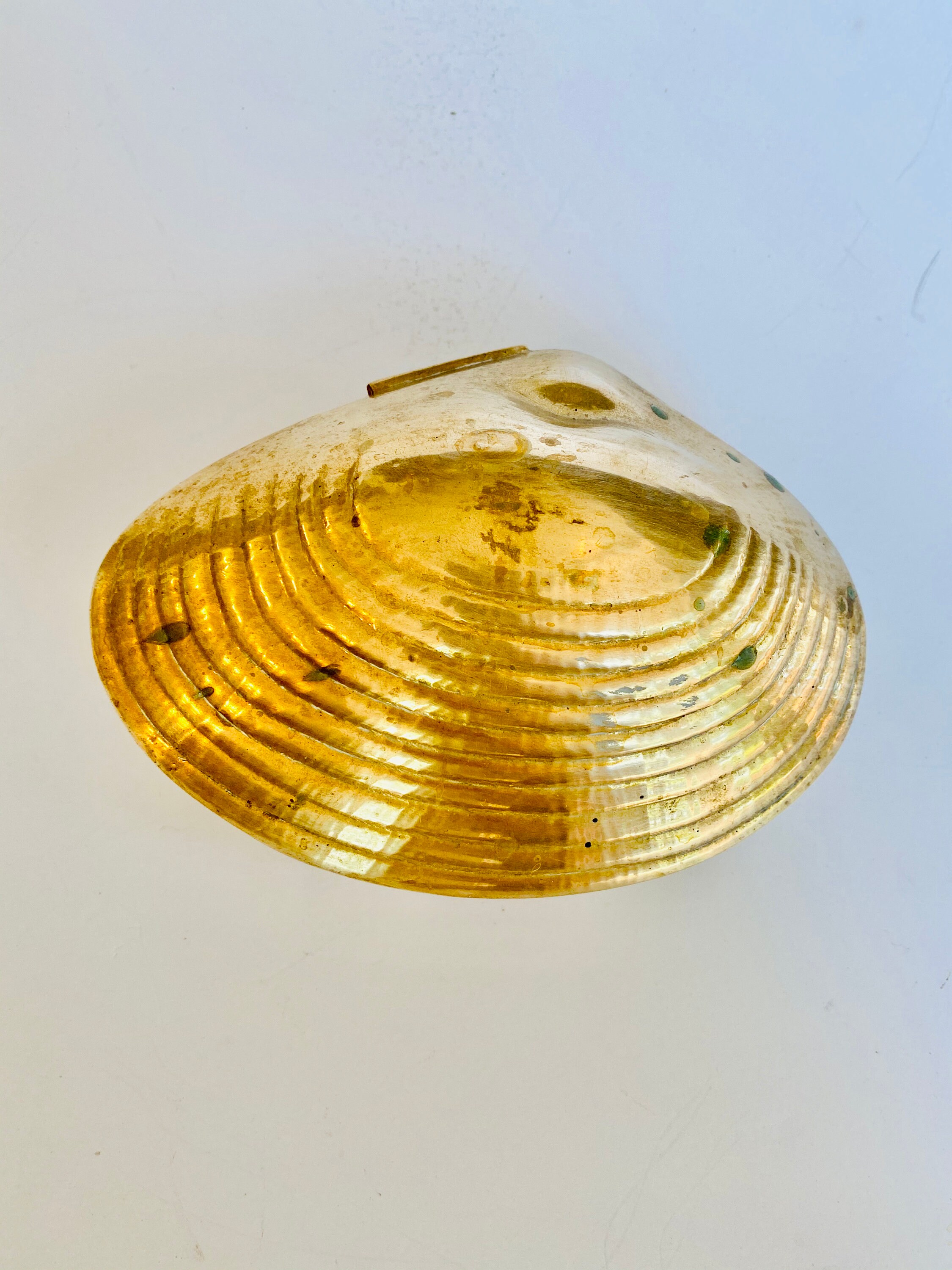 This gorgeous brass clam shell is a beautiful addition to a bookshelf or tabletop. Its concealed box function makes it a great place to stash your treasures.