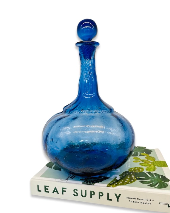 Vintage Hand Blown Cobalt Blue Glass Lidded Decanter